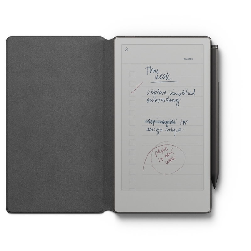 Book Folio makes it simple and easy to use reMarkable Paper Pro Move without ever having to take it out of its cover. Built-in magnets safely snap your paper tablet firmly into place.