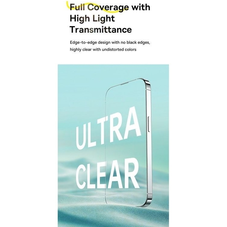 Baseus Sapphire Full-Coverage HD Tempered Glass Screen Protector for iPhone 16 Pro - Clear