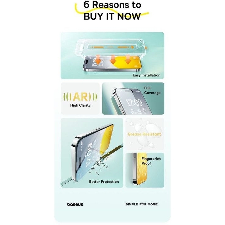 Baseus Sapphire Full-Coverage HD Tempered Glass Screen Protector for iPhone 16 Pro Max - Clear