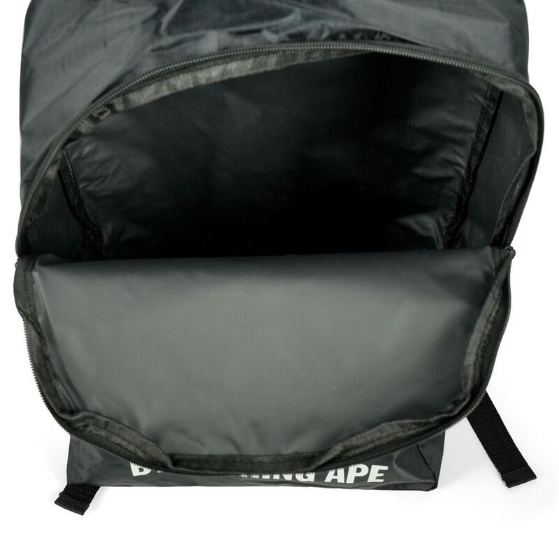 The BAPE Big Ape Head Black Backpack is crafted from high-quality nylon, featuring the iconic large white ape head logo on the front. Its classic design includes two adjustable shoulder straps for a comfortable fit, while the main compartment, easily accessed via a zipper, offers ample storage for all your essentials.