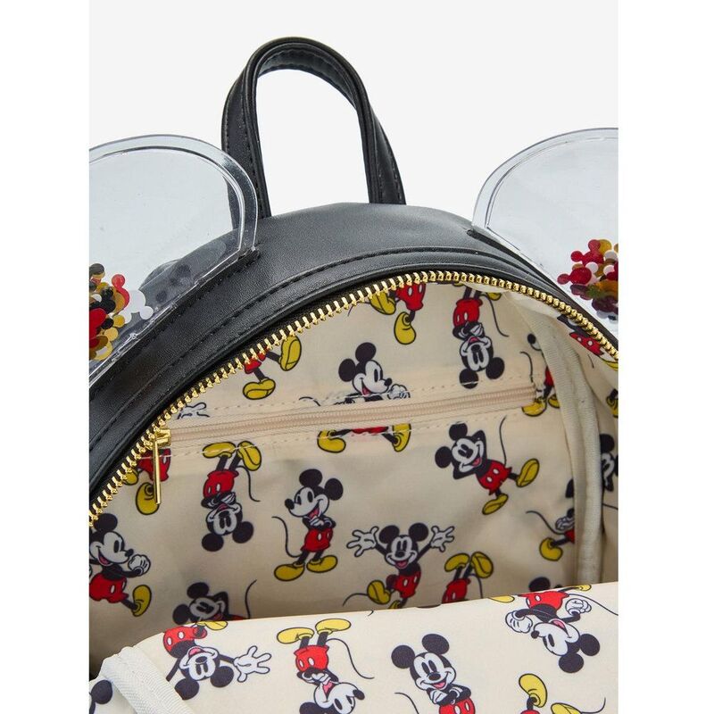 Steady yourselves, Disney lovers, because now you've got the opportunity to bring a bit of a party vibe anywhere you go with this EMEA exclusive Loungefly mini backpack! The simple but classic minimalist cosplay design of Mickey Mouse is cleverly offset by the "mouse ears" shaped confetti that lines the clear panel of the front zipper pouch and clear appliqued ears! Finished with embossed detailing, it's the perfect place for your essentials and doesn't need any excuse for a celebration!