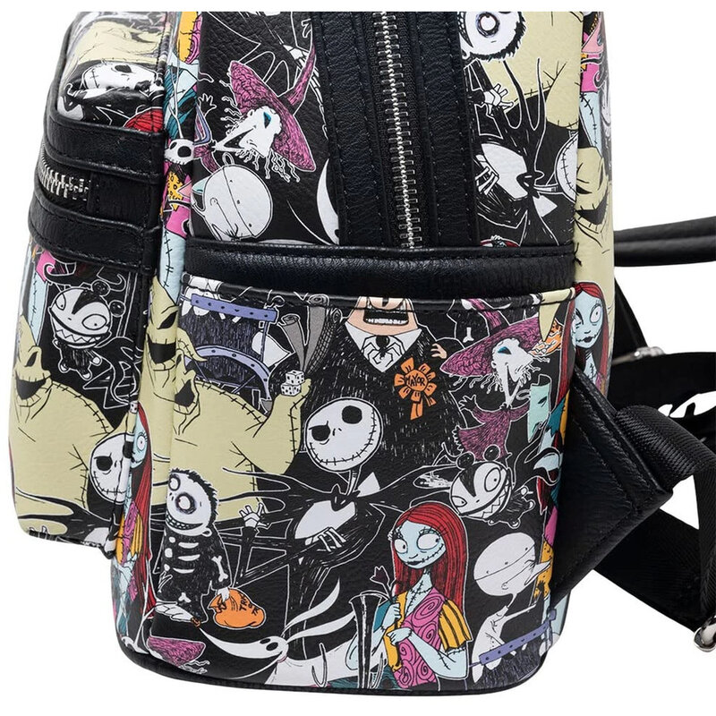 This Nightmare Before Christmas mini backpack features an allover print of the characters from Halloween Town. Print placement varies.