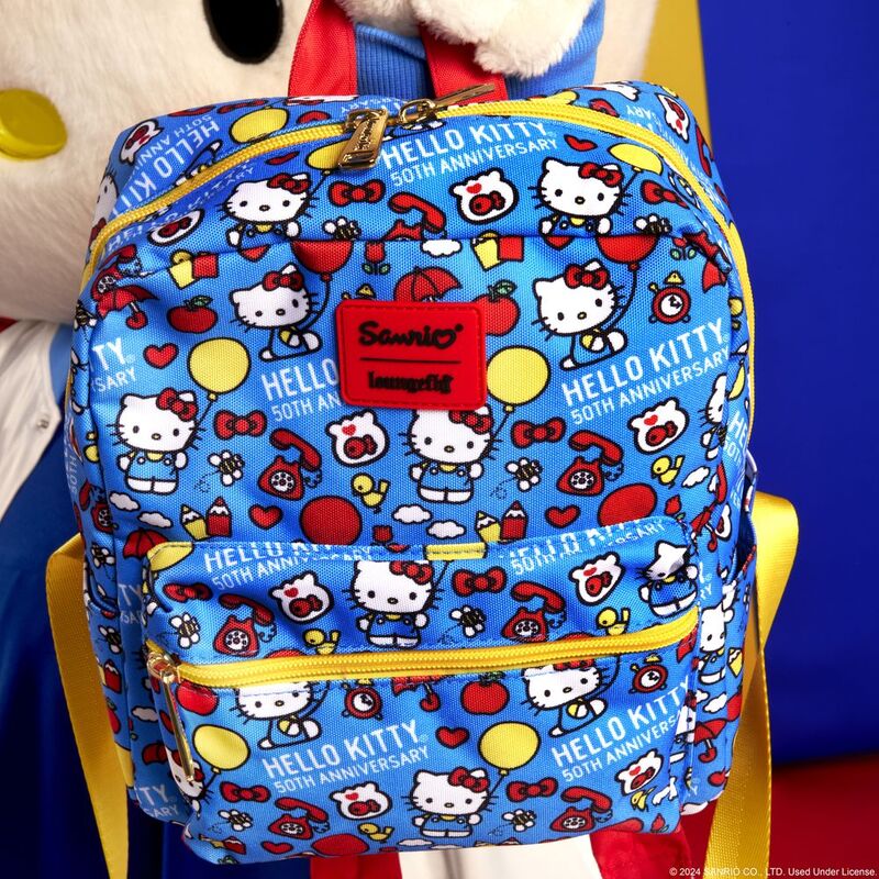 Loungefly Leather Hello Kitty 50th Anniversary Classic Alloverprintnylon Square Mini Backpack