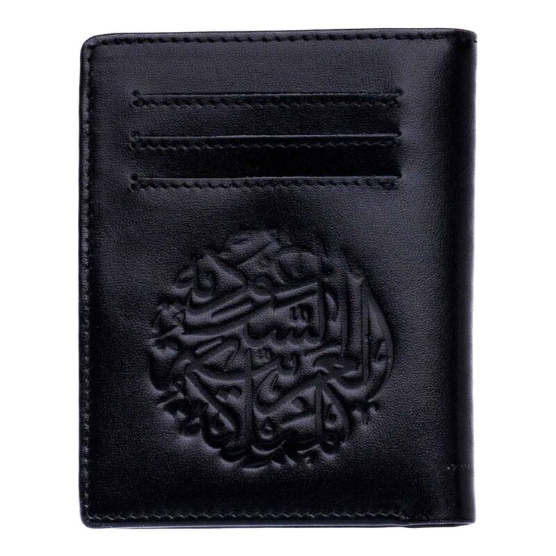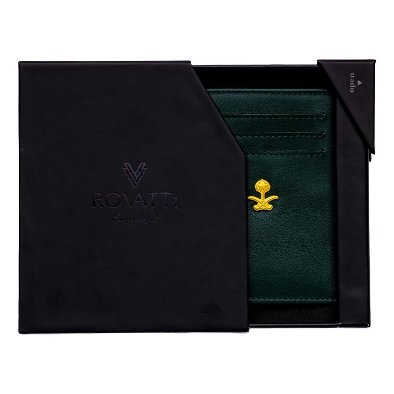 A real nappa leather men's light brown wallet with a metallic KSA logo in front and saudi Arabia embossed on the other.