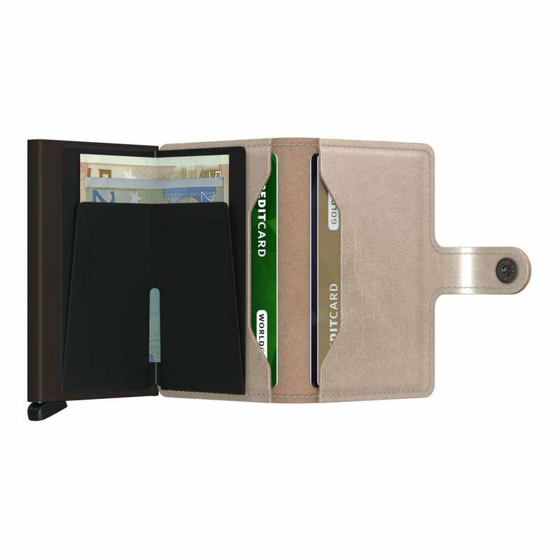 Based on the award winning SECRID Cardprotector, the Miniwallet is both a compact and secure wallet. In addition to the cards in the Cardprotector, the top quality leather interior offers space for a few cards, paper money, receipts, and business cards and some coins.