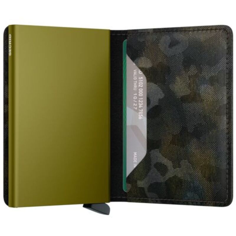 Its slim profile allows the Slimwallet to fit perfectly into any pocket. The open exterior is designed extra wide to accommodate cards, banknotes and receipts. The Cardprotector mechanism enables you to slide out cards with a simple motion, while the aluminum construction protects your cards from bending, breaking and unwanted wireless communication.