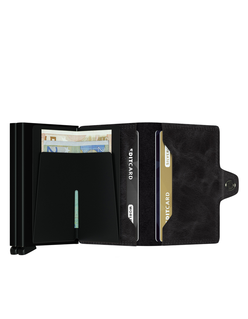 احمل أموالك وبطاقاتك بأناقة في محفظة سيكرايد توين فينتاج أسود واليت. إنه مصمم بكفاءة مع جيوب متعددة لتخزين كل هذه الضروريات بطريقة منظمة.