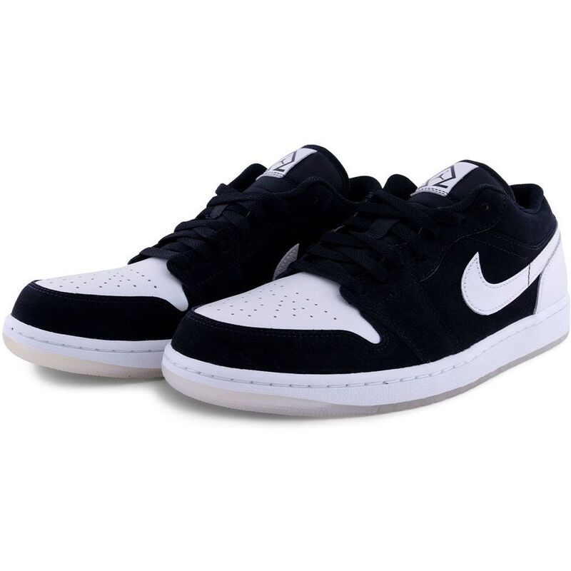 The Jordan 1 Low Diamond Shorts features an elegant black Durabuck and white leather upper in a classic color block, reminiscent of iconic Jordan 1s like Bred and Shadow. An Air Jordan Wings logo graces the heel, while the white midsole and semi-translucent outsole complete the exceptional look.