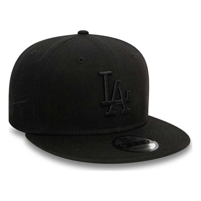 Official New Era Mens Monochrome 'LA Dodgers' 9Fifty Cap. Embroidered 'LA Dodgers' logo on front. Embroidered New Era flag on left. 6 panel structured crown. Flat visor with rear snapback fastener. Cap colour black with black undervisor.