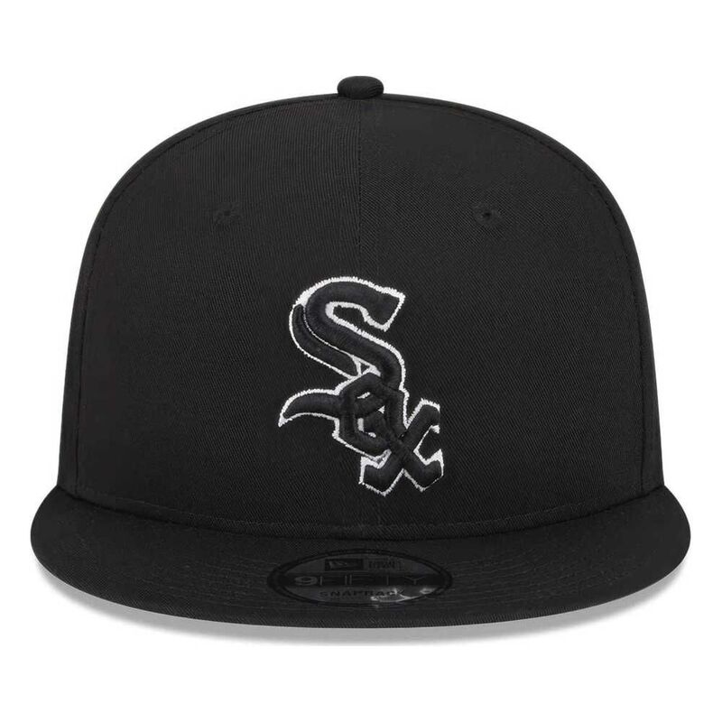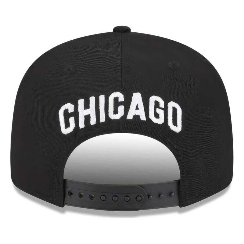 Black flat peak cap from New Era with the Chicago White Sox baseball club motif. Adjustable size. Officially licensed MLB product.