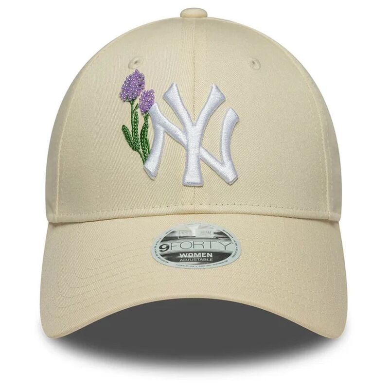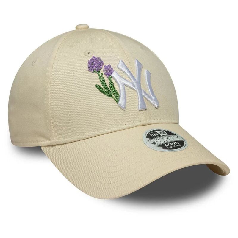 The New York Yankees Beaded Floral Cream Women's 9FORTY Adjustable Cap features an embroidered Yankees logo with floral embroidery finished with beads at the front panels and an adjustable D-Ring closure at the rear.