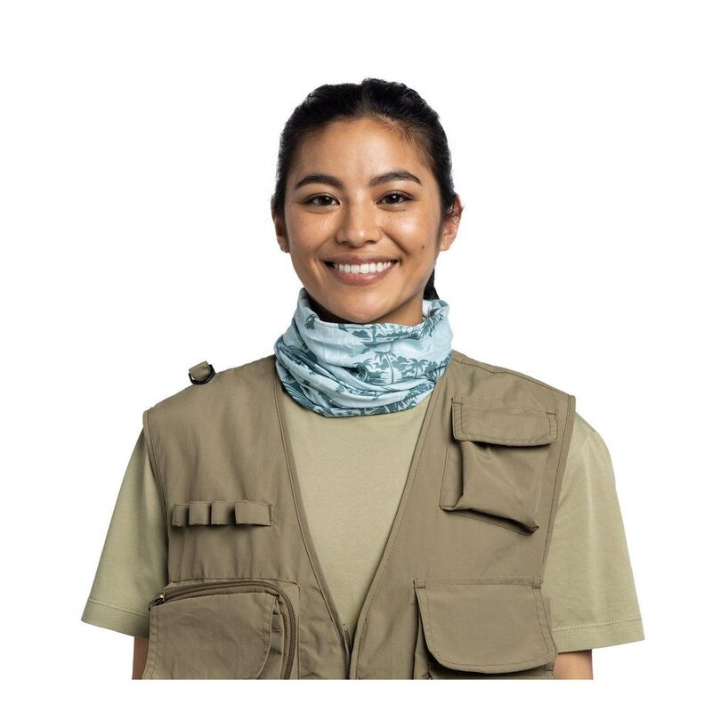 Lightweight Multifunctional neckwear made from recycled plastic bottles, delivering UPF 50 sun protection and evaporative cooling properites. Running, Jumping, Hiking, Fishing, Paddling, Camping - what's your favourite summer activity? Any way you wear it, you'll be feeling cool, fresh and protected from the sun on every summer outing.