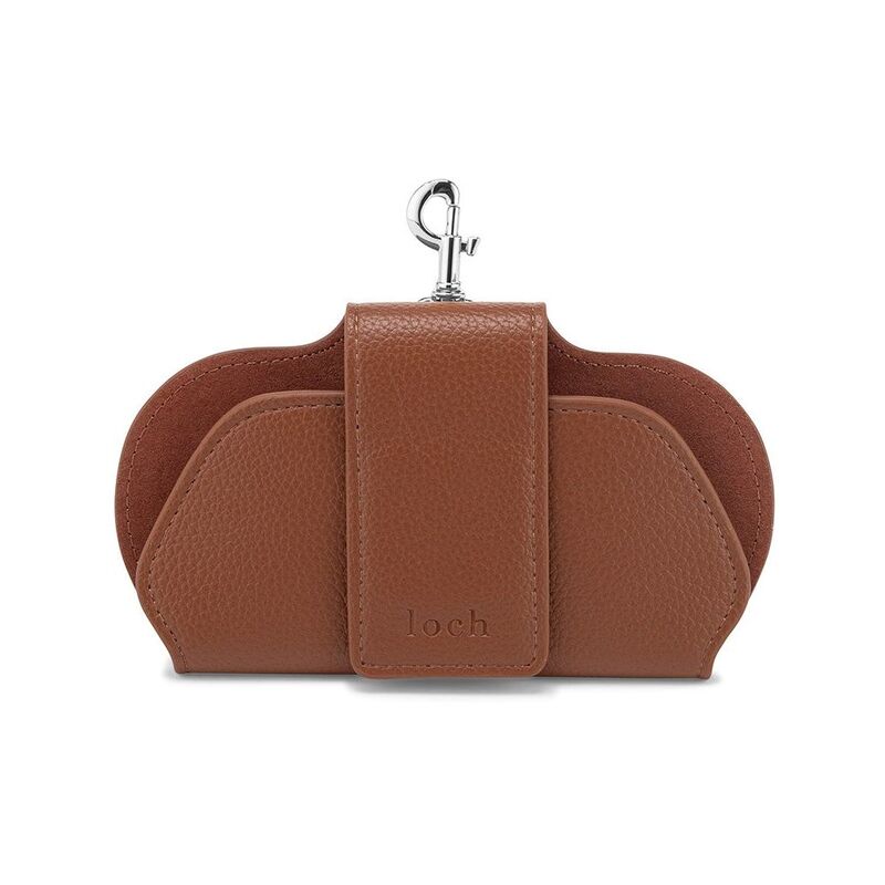Loch Clippable Vegan-Leather Sunglass Case Brown / Silver Detailing