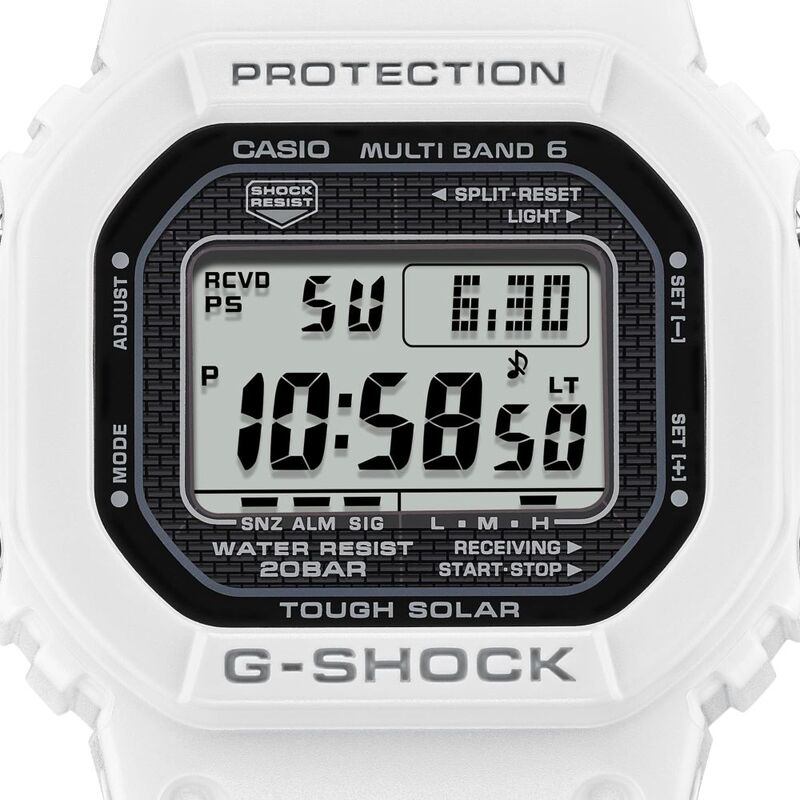 These new takes on the GW-5000 deliver the same functional advances in radio-controlled, solar-powered timekeeping, now in fresh single-tone color options. Rest assured, though popular design details from the original G-SHOCK, from the solid sophistication of the metal case to the screw-lock case back and face design, stay just the same style.