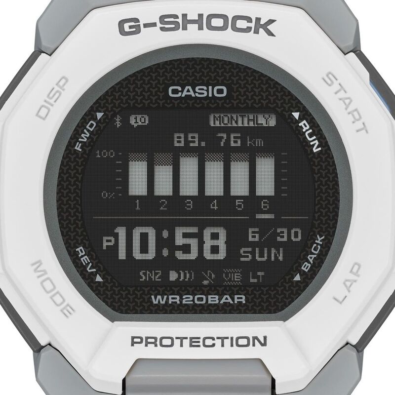 Find more joy in your workout with the GBD-300, packed with practical functionality to support running and other training regimes. With accelerometer, distance tracking, Smartphone Link, high-resolution display, and more, this G-SQUAD has you covered from managing your everyday health to improving your endurance.