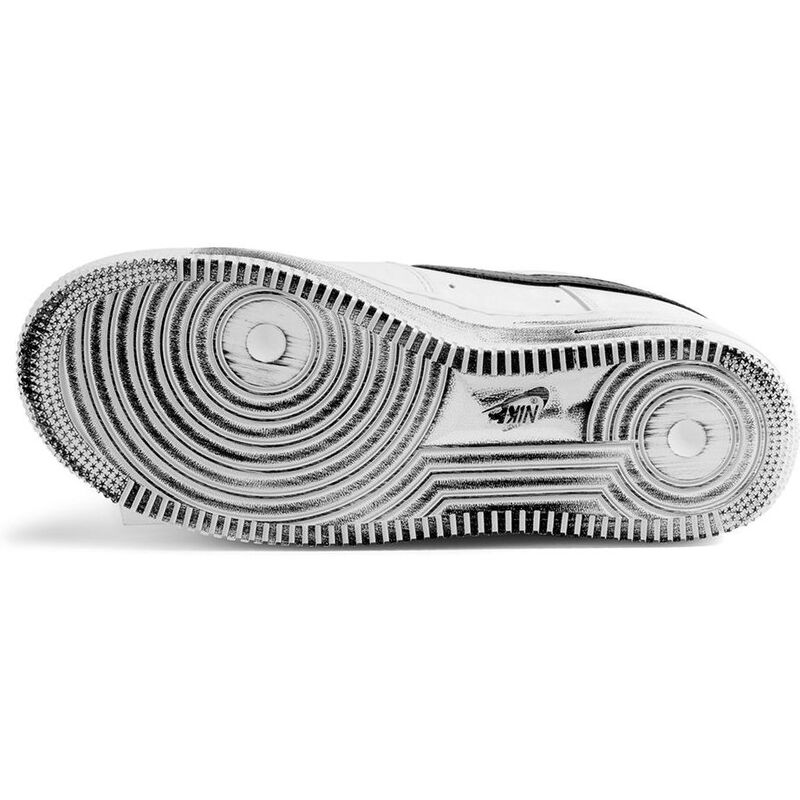 Inspired by the collaboration with Korean hip hop star G-Dragon, these sneakers feature a black Swoosh on a white leather upper designed to wear away, revealing custom artwork. The decorative eyelet pins, embroidered daisy, and brushstroke effects complement the unique design.