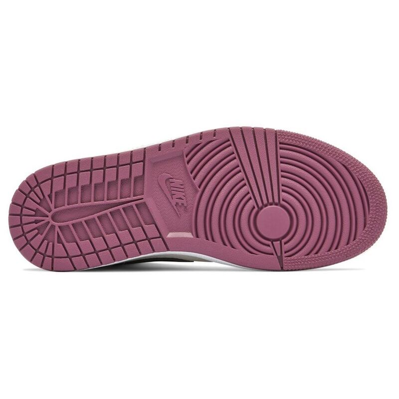 Crafted to ensure both comfort and utility, this high top boasts a berry-colored sole and a white midsole. Berry-colored leather overlays adorn the top of the white base, while the Nike swoosh and the Air Jordan logos in black complement the elegant design.