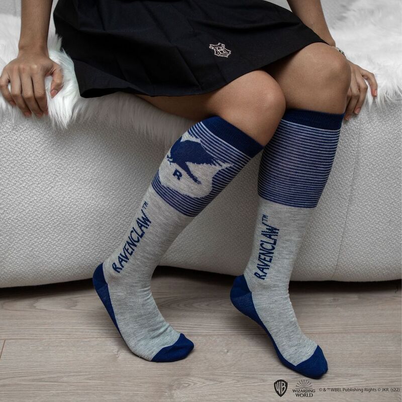 These 3 pairs of high socks featuring Ravenclaw emblems and the recognisable blue and silver colors are perfect for any Hogwarts lover and Ravenclaw students. Lounge all day in these colorful, comfy and cute high socks designed with emblematic and unique prints from each Hogwarts house to keep your legs warm.