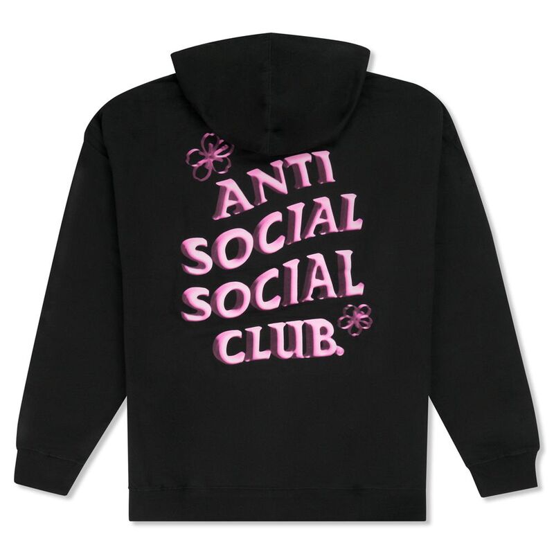 The ASSC Coral Crush hoodie showcases the brand’s logo in a striking 3D design on the chest, elegantly accented by two delicate flowers. The back mirrors this with an oversized matching logo, all set against a sleek black backdrop.