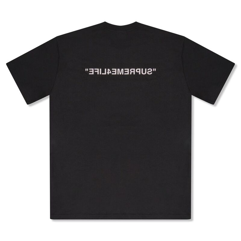 The Supreme 4 Life Tee in black features a crown graphic on the chest topped with the Supreme logo and the phrase "New York" in white. On the back, the reversed "SUPREME4LIFE" lettering adds a unique touch, reflecting the bold and rebellious essence of streetwear.