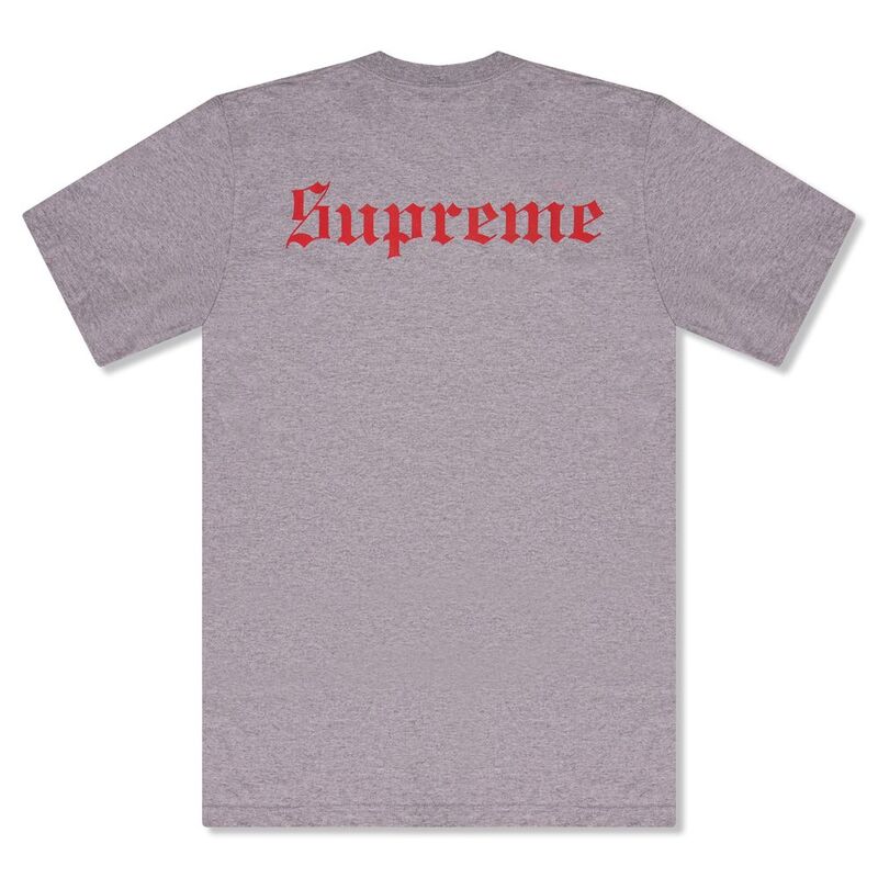 The Supreme Snow White Tee in heather grey gives a bold, streetwear twist to a classic fairytale. It features a print of the iconic Disney character, Snow White, depicted in a moment of repose against the sleek heather grey backdrop. On the back, "Supreme" appears in a gothic-style font, blending high fashion with pop culture and a rebellious edge.