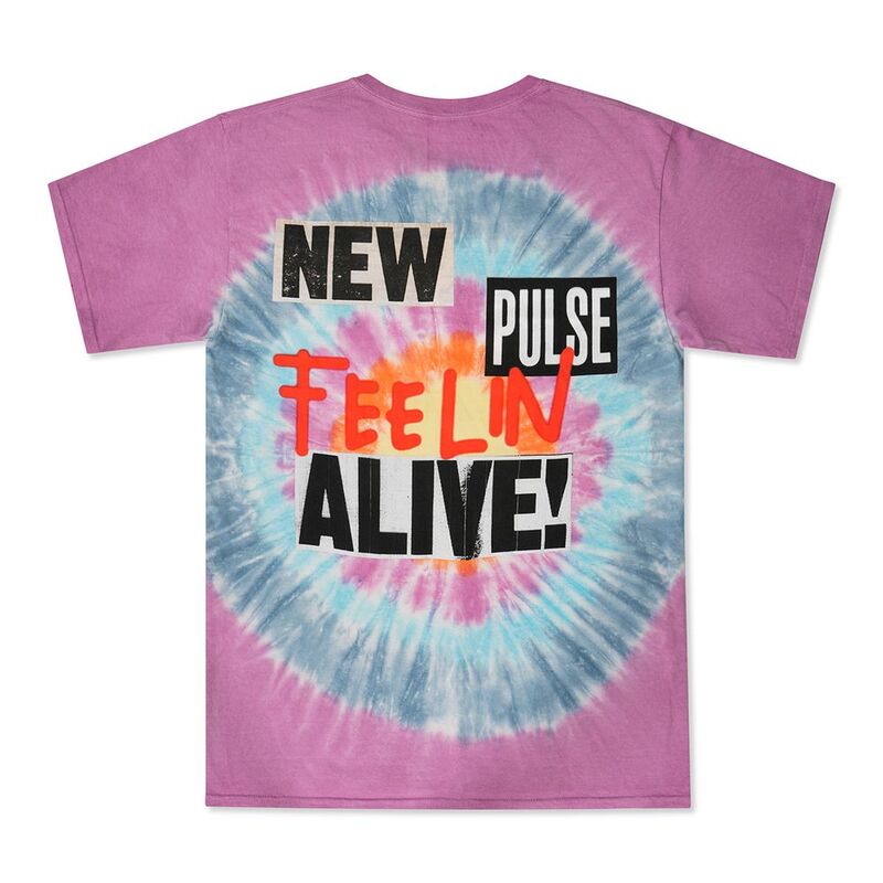 The Travis Scott Astroworld Austin Festival Exclusive T-shirt Tie Dye is made from premium cotton, celebrating the Astroworld Festival in Austin. The front features a bold tie-dye design, with a pink Astroworld logo and a heartbeat blooming into a cactus. The back displays the words "NEW PULSE FEELIN ALIVE", embodying Travis Scott's iconic style and cultural influence.