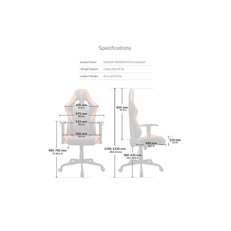 - The COUGAR Armor Elite provides the comfort and stability you need to stay relaxed and healthy through long gaming sessions. Fully adjustable and made of the highest quality materials, the Armor Elite exemplifies the distinctive COUGAR design that has become synonymous with a passion for gaming.