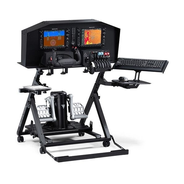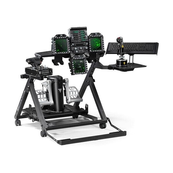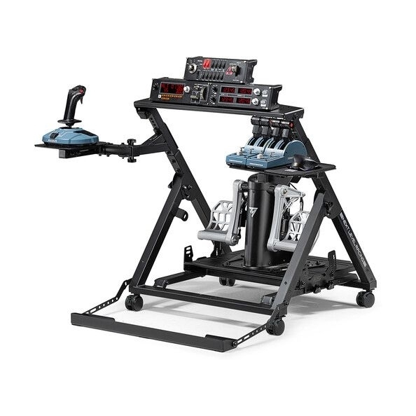 The Flight Stand Pro by Next Level Racing offers an affordable yet highly adjustable and stable platform for flight sim controllers. It is designed to support yokes, joysticks, and throttle quadrants, offering an ergonomic setup for a comfortable flying experience without requiring a dedicated cockpit