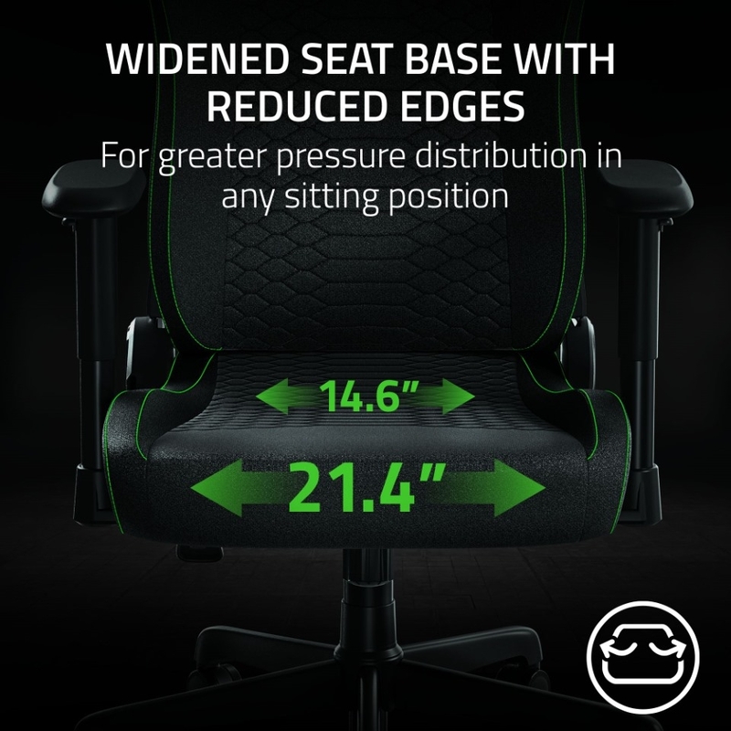 WIDENED SEAT BASE WITH REDUCED EDGES — Sculpted with reduced edges to guide the body towards the center for optimal pressure distribution; enjoy greater flexibility in sitting with a widened seat base