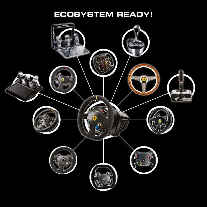 • Ferrari 488 GT3 Wheel Add-On is natively compatible with all Thrustmaster racing wheel bases, thanks to the two Quick Release holders allowing users to select the attachment compatible with their racing wheel base without the need for an additional adapter. This next-generation attachment system ensures direct transmission between the racing wheel base and the wheel rim.