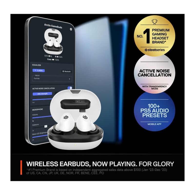 SteelSeries Arctis GameBuds for PlayStation Wireless Gaming Earbuds - White