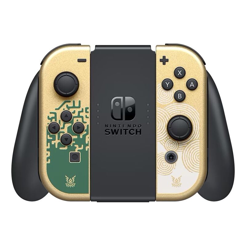 The Nintendo Switch – OLED Model - The Legend of Zelda: Tears of the Kingdom Edition system features a design inspired by the Legend of Zelda: Tears of the Kingdom game, including the familiar Hylian Crest from the Legend of Zelda series on the front of the dock (game not included).
