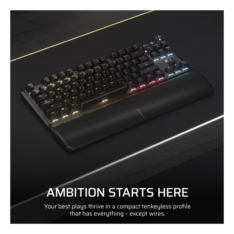 - Pre-Lubed MLX Red v2 Switches: Pre-lubricated CORSAIR MLX Red v2 linear mechanical switches deliver smooth, responsive, and stable keystrokes, with enhanced ultra-bright per-key RGB backlighting
