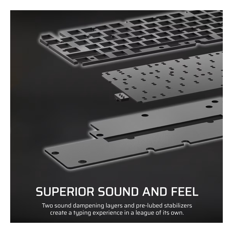 - Ultra-Satisfying Typing Acoustics: Two sound dampening layers made from premium foam material, plus pre-lubricated stabilizers, temper unwanted pings and clacks for pleasantly subdued typing