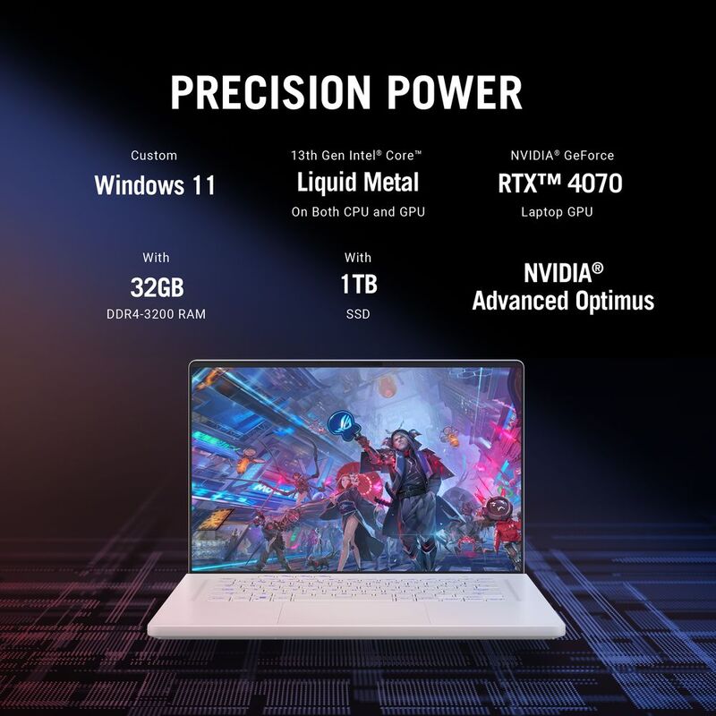 Prepare to unlock a whole new level of Windows 11 gaming. Powered by up to an 13th Gen Intel® Core™ i9 13900H processor and up to an NVIDIA® GeForce RTX™ 4070 Laptop GPU, the Zephyrus G16 is ready to dominate the latest AAA games. With support for up to 48GB of RAM and up to 2TB of SSD storage, the G16 can store your entire game library and easily keep background apps running smoothly as you play.