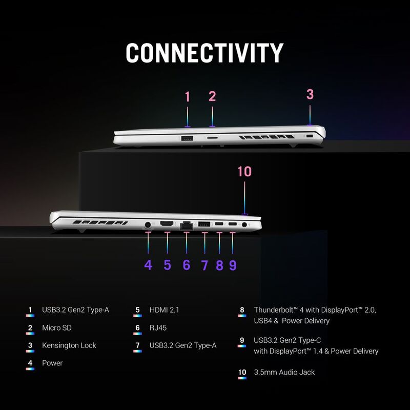 With the hybrid core technology of Intel’s Raptor Lake CPU architecture, the Zephyrus G16 sacrifices neither power efficiency nor performance. Whether you’re playing games at high framerates or keeping multiple background programs open and streaming simultaneously, the Intel® Core i9-13900H can handle it all.