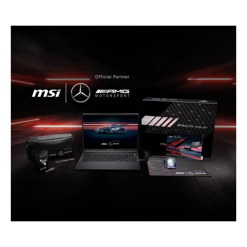 The Stealth A16 AI+ Mercedes-AMG Motorsport embodies MSI's pursuit of cutting-edge performance fused with the spirit of AMG Driving Performance. Its lightweight magnesium-aluminum alloy chassis features a seamlessly integrated Mercedes-AMG emblem that is sleek, bold and iconic. This global limited edition laptop includes exclusive co-branded accessories and is crafted for those who demand uncompromising power, precision, and refined style.