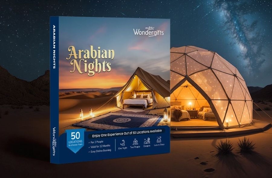 This gift box offers a selection of luxurious Arabian Nights-themed staycations for two - featuring options amidst the desert and in luxury hotels. Available across the UAE.