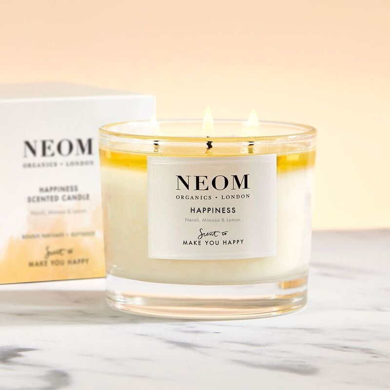 Neom Wellbeing 3 Wick Happiness Scented Candle (420g) - Neroli / Memosa / Lemon