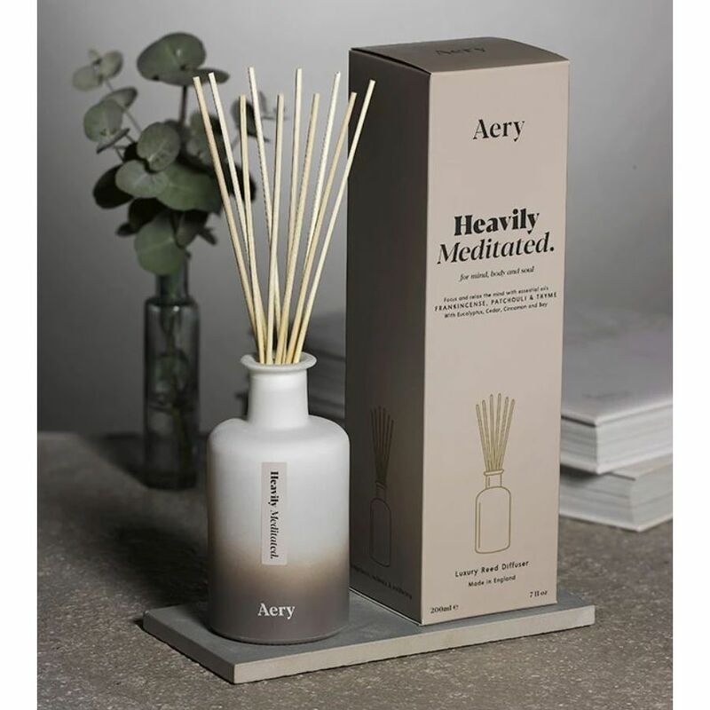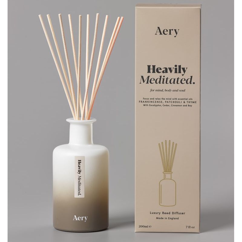 الشمعة المعطرة آري هيفيلي ميديتيد تساعد على جعل أجواء هادئة. هذه الشمعة مشبعة برائحة الأوكالبتوس والقرفة والخليج والأرز مع الزيوت الأساسية من اللبان والزعتر والباتشولي.