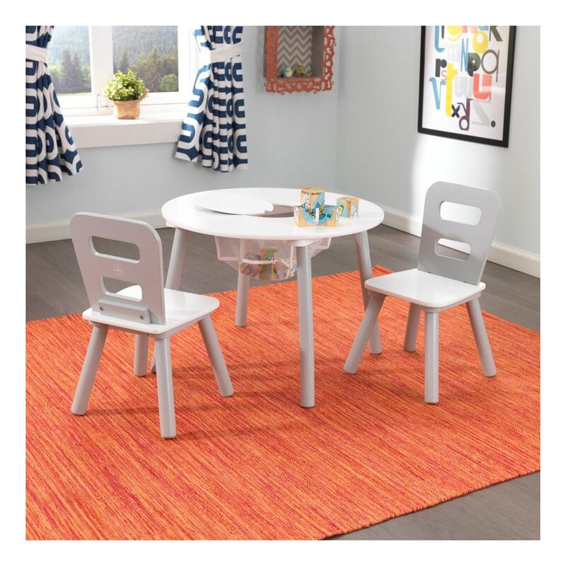 Kidkraft Round Table With Storage & 2 Chairs Set Gray & White