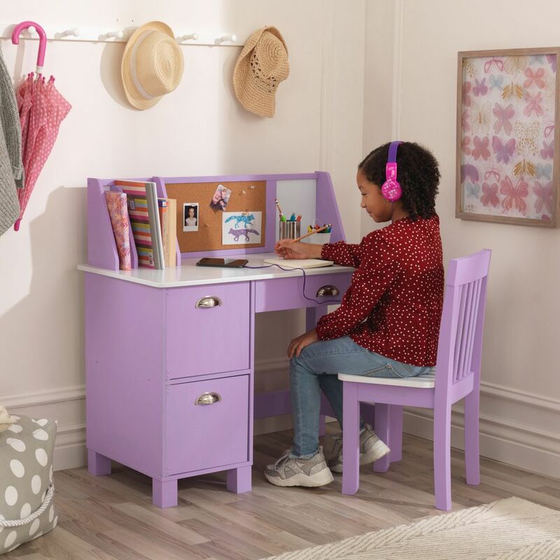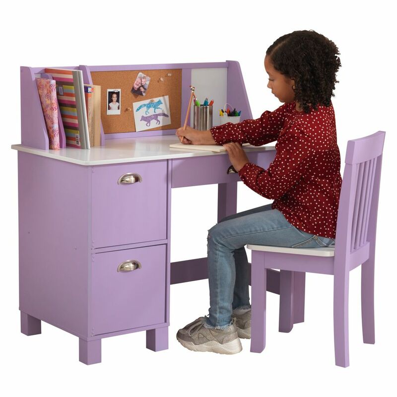 The KidKraft Study Desk with Chair gives young students a perfect workspace for finishing homework, studying or working on craft projects. A bulletin board surface gives them a place to pin pictures, drawings and important notes. Two cabinets and a pencil drawer offer plenty of storage to keep kids organized.