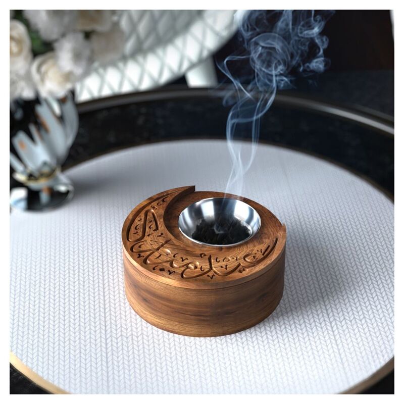 Hilalful Eid Mubarak Wooden Crescent Incense Burner