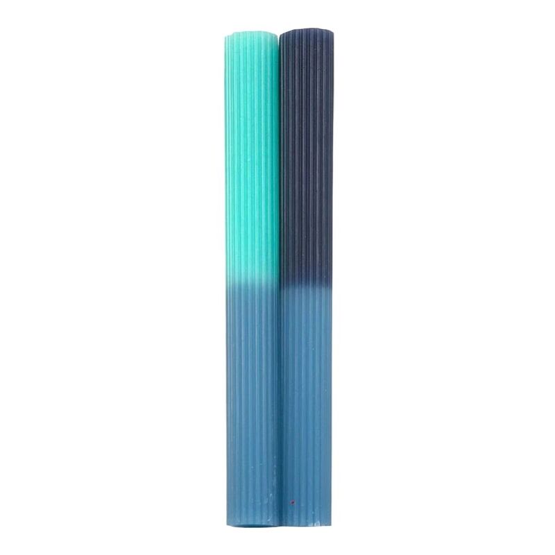 Elevate your dinner table with these stunning ombre blue candles. Each in different ombra designs with three different blue tones, these ribbed candles are made of high-quality, unscented wax and are sure to be the talk of your table.