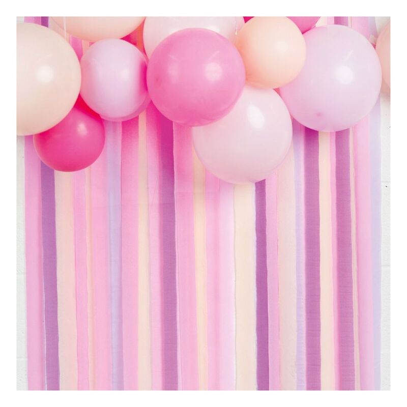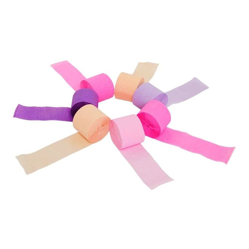 Pink Paper Party Streamer by Talking Tables. Pack of 7 party streamers in various pastel shades of pink and purple. Perfect for a Birthday, Hen Do or Baby Shower as a decoration or as a party photo wall backdrop. These versatile streamers are easy to use and make for an eye-catching party decoration. Pair with our 'Rose' or 'Pink' range for matching party decorations, tableware and supplies. Size: 7 streamers, 10m each.