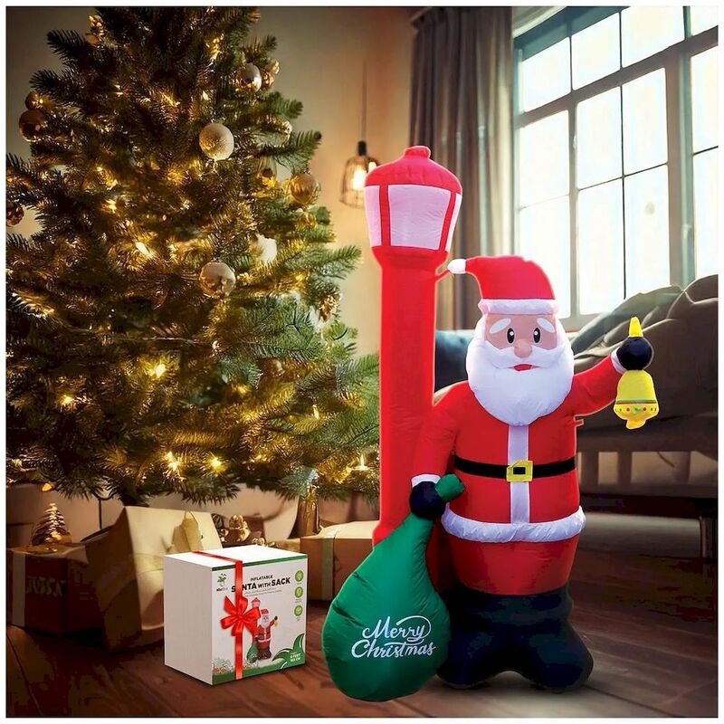 Meet the ultimate holiday guest 6 Ft Christmas Inflatable Santa Claus with Sack! Santa’s here to spread cheer with his giant, glowing presence, thanks to built-in LED lights that make him shine bright, day or night. With his classic red suit and festive sack full of holiday magic, he’s ready to take center stage in your yard or cozy up in your home. Whether he's greeting neighbors outside or delighting guests indoors, this blow-up Santa is the perfect family prop for adding a jolly, larger-than-life touch to your Christmas décor. Let the holiday fun begin!