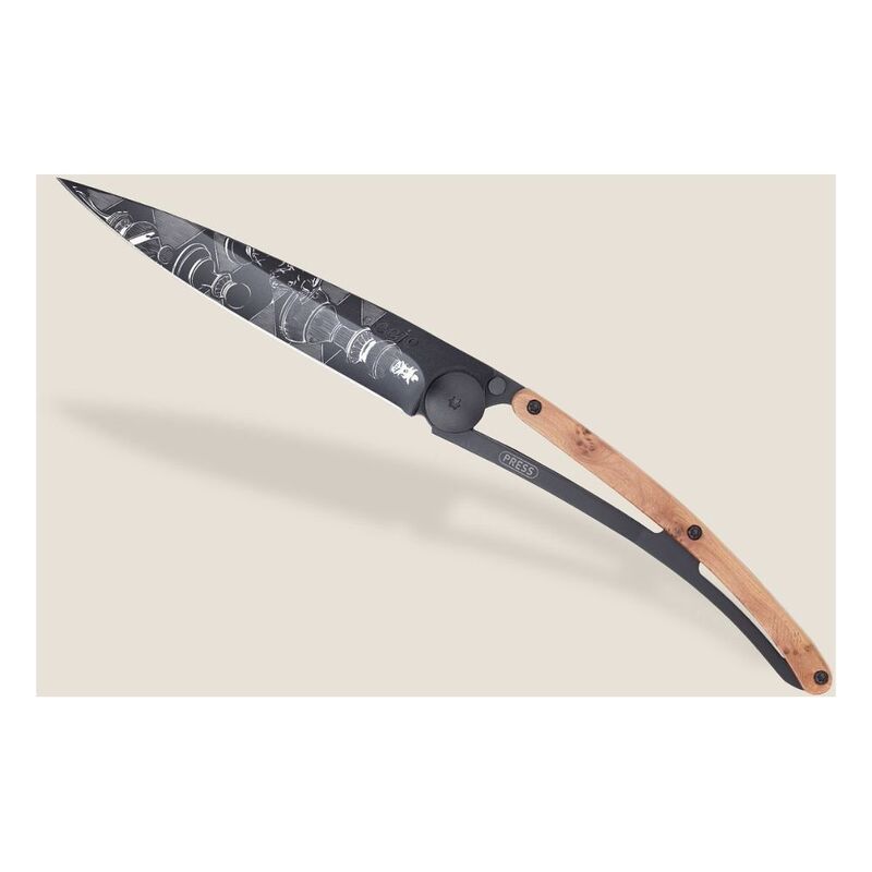 Deejo 37G Juniper Wood Pocket Knife - Chess Light Brown