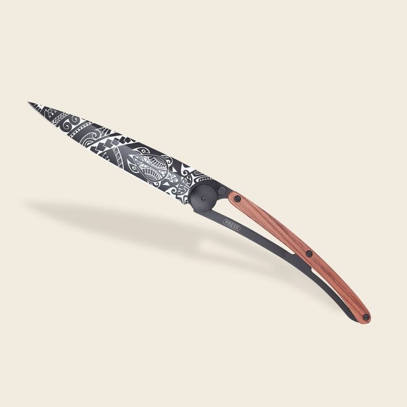 Deejo 37G Pocket Knife - Coral Wood/Polynesian (Grey)