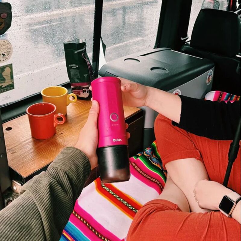 Weighing like a loaf of bread less than 700g, you can take Outin Espresso Machine anywhere for espresso with its travel-sized shape. With just one tap, you can start brewing your golden ratio coffee with a bottle-sized Outin at home or outdoors. Now, overpriced coffee and long waiting time at cafes is over.