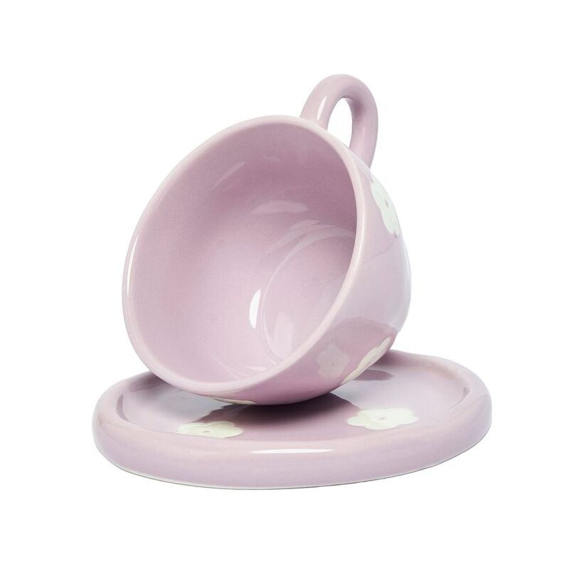 Prickly Pear Ditsy Teacup & Saucer / Floral Lilac
